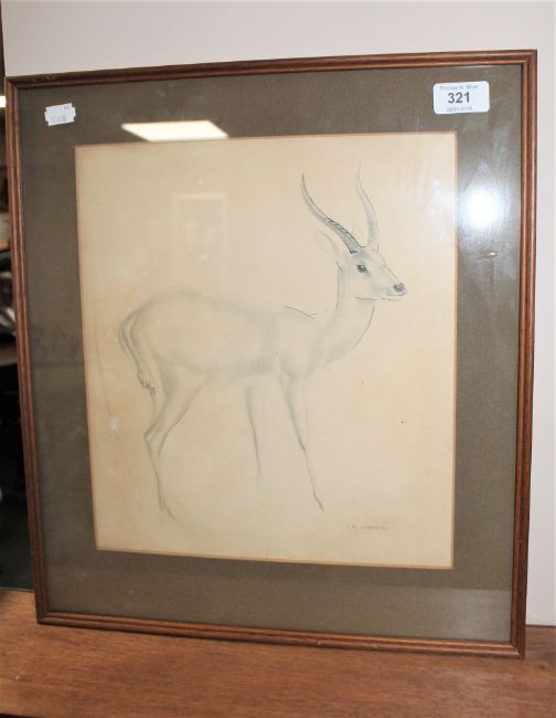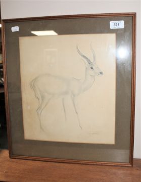 J. R. Skeaping, pencil and ink sketch of a Leechwee Antelope, signed