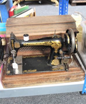 An oak cased vintage Singer hand sewing machine