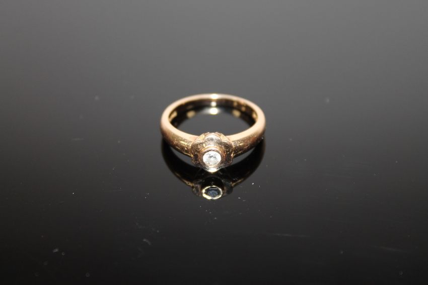 An 18ct gold ring set with a .15 solitaire diamond, 4.3g