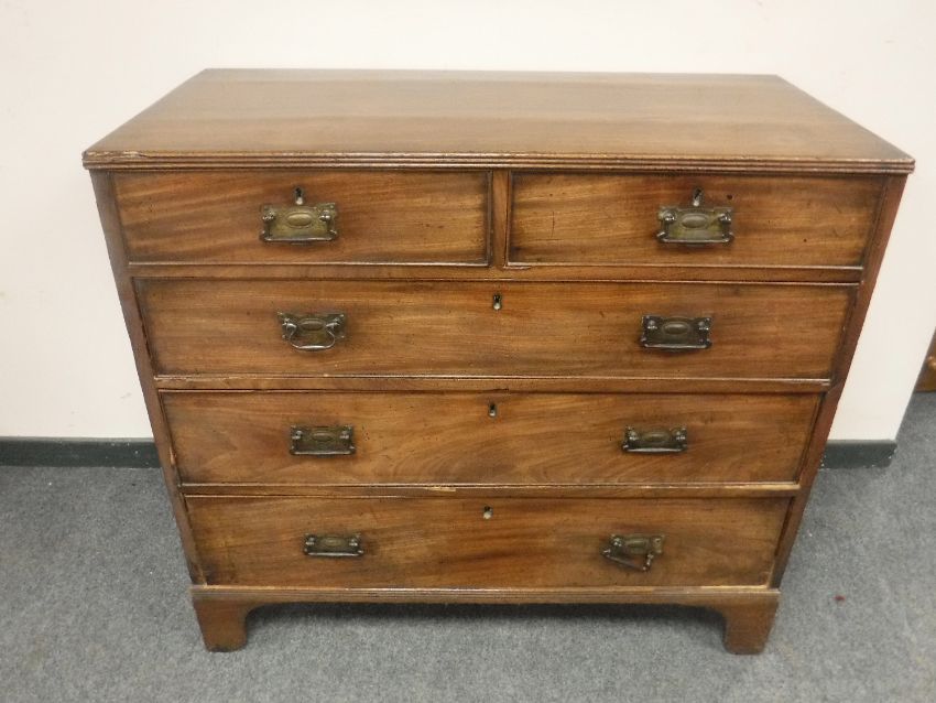An early Victorian mahogany chest of five drawers on bracket feet, width 104 cm