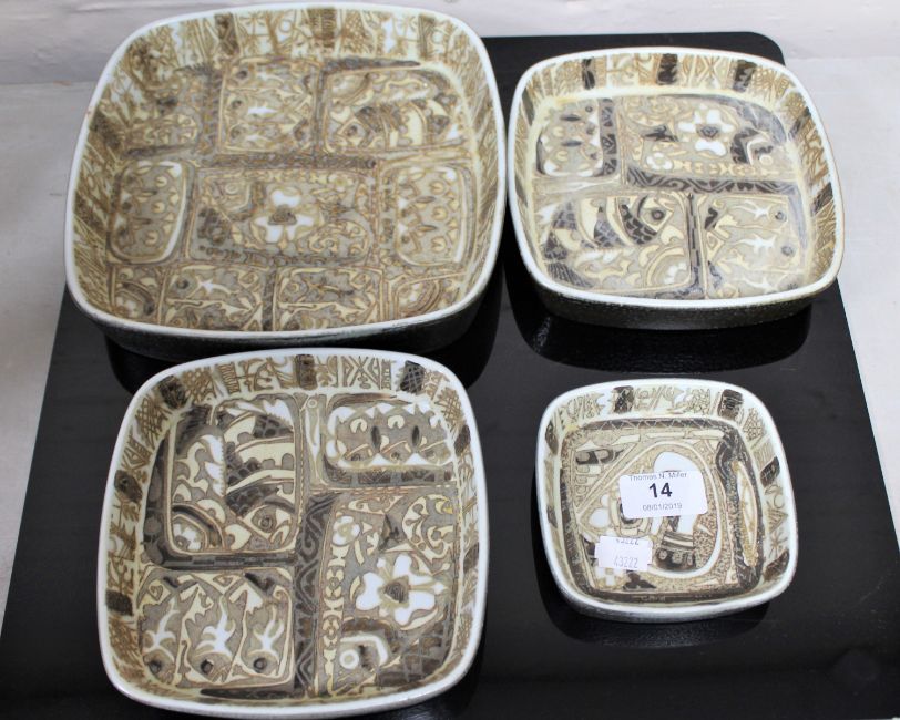Four Royal Copenhagen Fajence shallow dishes