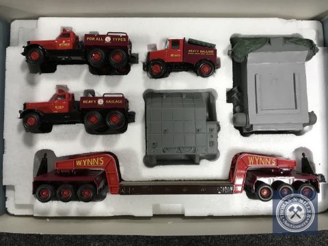 A Corgi Classics Heavy Haulage Die Cast Detailed Scale Model For The Adult Collector : 31009 - WYNNS comprising Diamond T Ballast (X2) 24 Wheel Girder Trailer with Boiler Load & Scammell Highwayman Ballast, Scale 1:50, includes Limited Edition Certificate, includes Official Miniature Corgi, boxed.