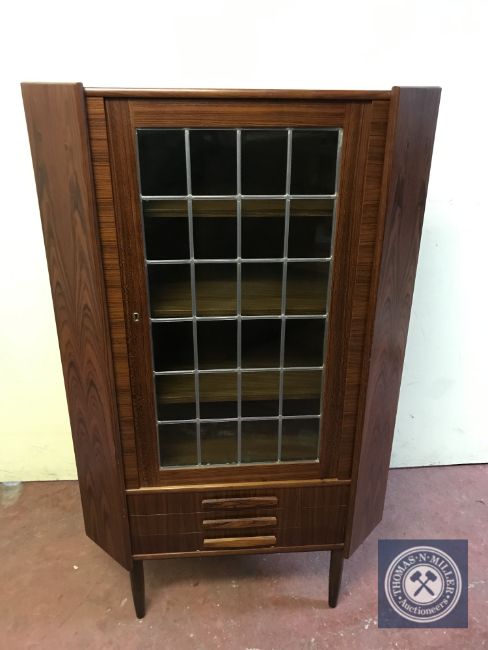 A mid 20th century leaded door corner cabinet
