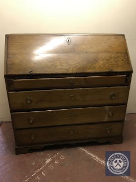 A late nineteenth century oak bureau fitted with four drawers