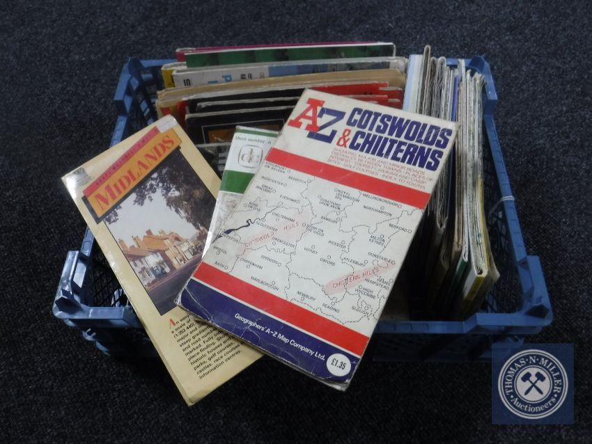 A gilt framed Vernon Ward picture of swans together with two framed oils and a chrome framed signed limited edition screen print, and a collection of Ordnance Survey maps