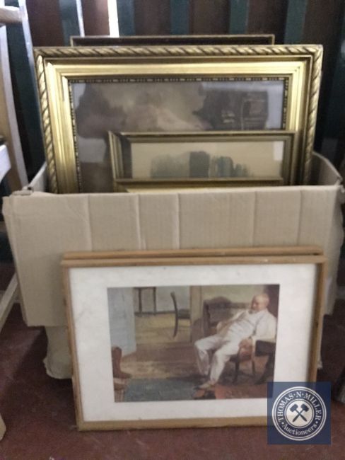 A box of continental school oils, pictures and prints
