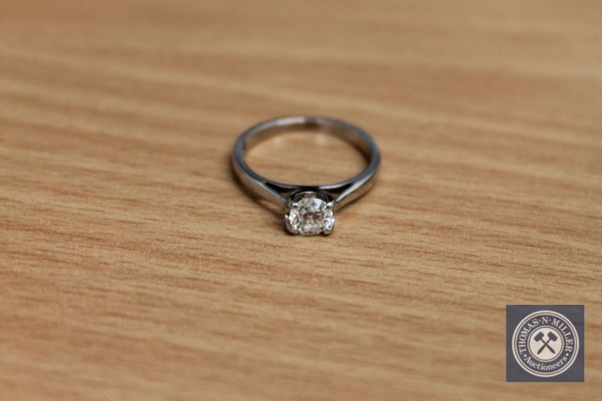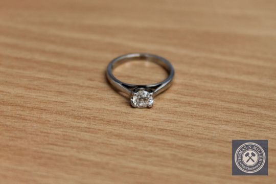 An 18ct white gold diamond solitaire ring, the shank stamped 'Forever'