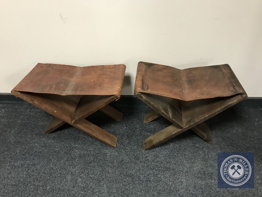 A pair of African style leather topped stools