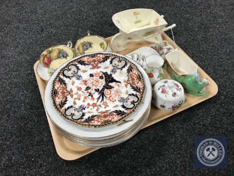 A tray of six Royal Worcester Evesham plates, Royal Crown Derby plate, china thimbles, Hornsea vase etc