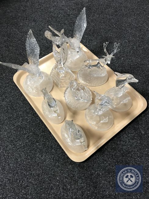 A tray of nine French crystal ornaments