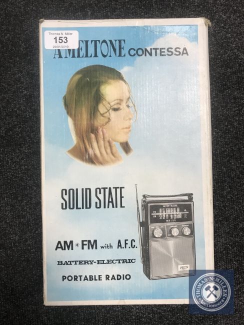 A Meltone Contessa solid state portable radio in original box.