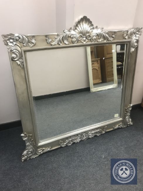 A Victorian style silvered overmantel mirror 123 cm x 119 cm