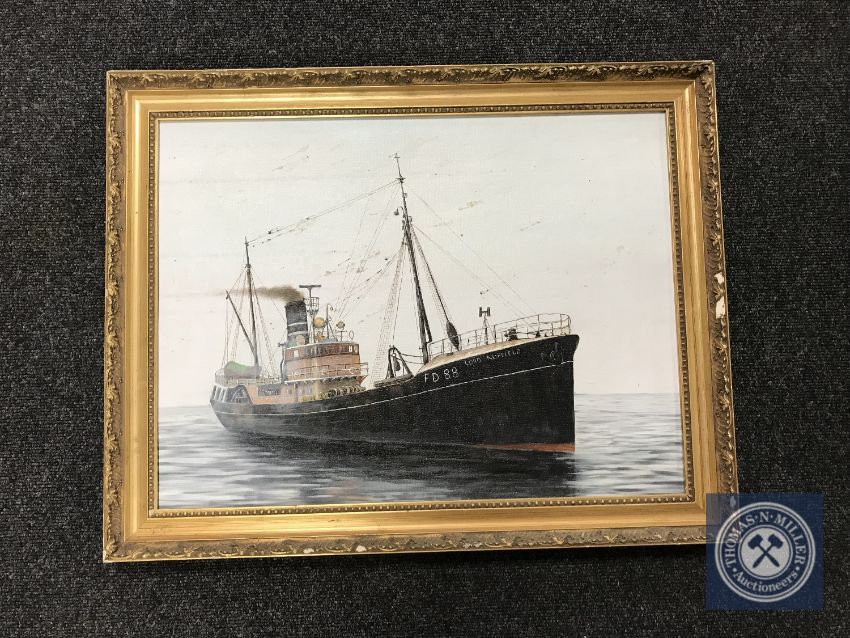 A gilt framed oil on board of the Lord Nuffield fishing trawler