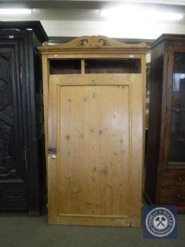 An antique pine hall wardrobe