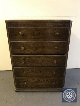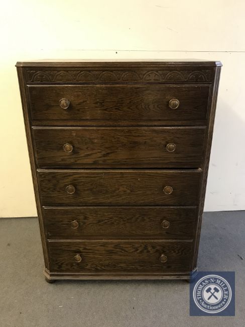 A mid 20th century oak five drawer chest