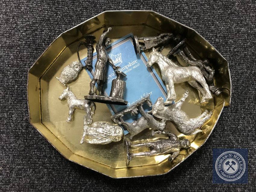 A tin containing ten pewter and metal figures including Royal Hampshire Craftsmen