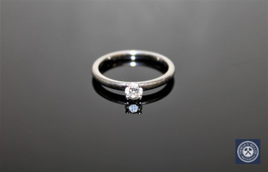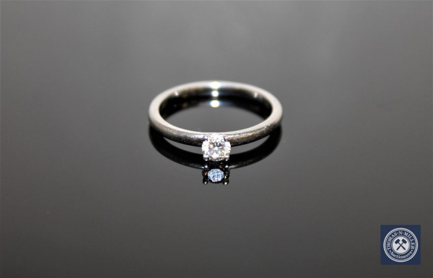 The ring is in good condition. The brilliant-cut stone weighs approximately 0.30 carat. Its approximate qualities are; Colour - J/K, Clarity - VS1/SI2.