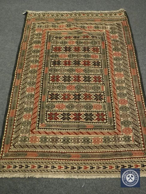 A needlework Sumak kilim rug, 186cm by 131cm