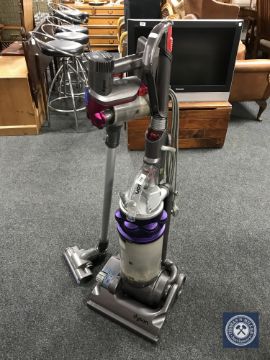 A Dyson DC 14 upright vacuum and a Dyson DC 35 hand hand vacuum plus a box of accessories