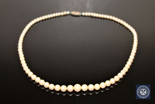 Fine quality strap of graduated pearls on a white gold diamond clasp