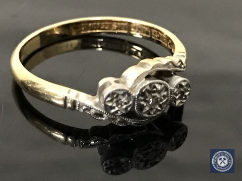 An 18ct gold and platinum three stone diamond ring