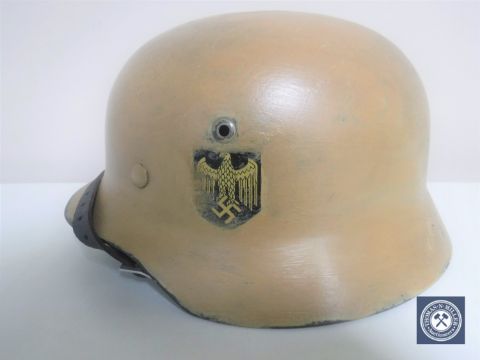A German Third Reich M35 helmet, later painted, with single eagle decal, the underside stamped 4730 and Q64