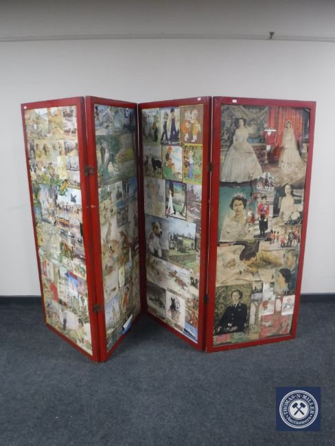 An early 20th century four fold scrap screen