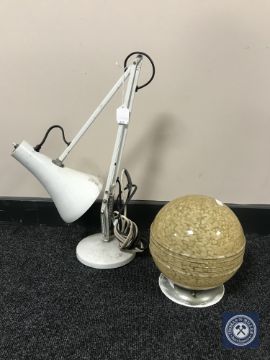 A mid 20th century circular light shade together with an angle poise lamp
