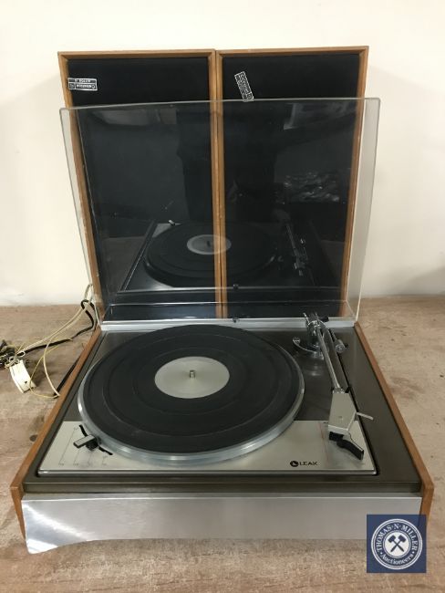 A Leak Lenco turntable together with a pair of teak cased Celestion Ditton 15 speakers