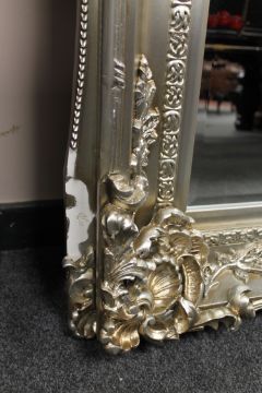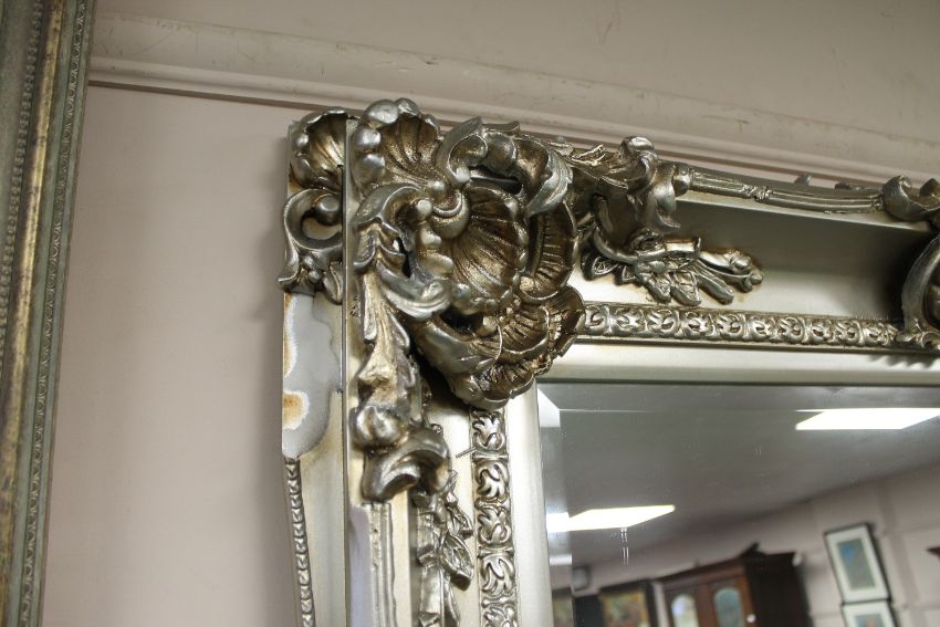 A large ornate silvered overmantel mirror, 200 cm x 100 cm.