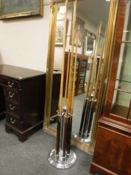 The table has some typical scuffs and scratches to the frame and a couple of marks to the cloth. Generally it is in very good condition. The slate top splits into three sections, all of the cushions can be removed and the base can be disassembled.