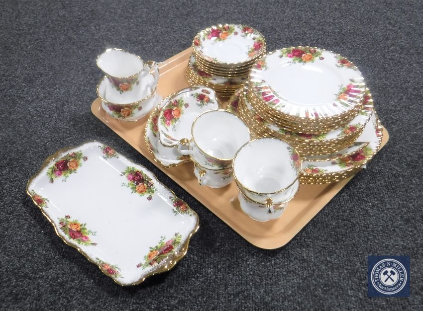 A tray of approximately forty pieces Royal Albert Old Country Roses tea china and dishes