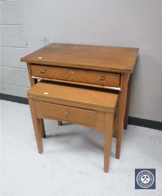 A mid 20th century teak writing table and sewing machine table