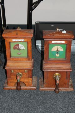 Four cased railway signal box instruments