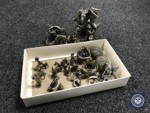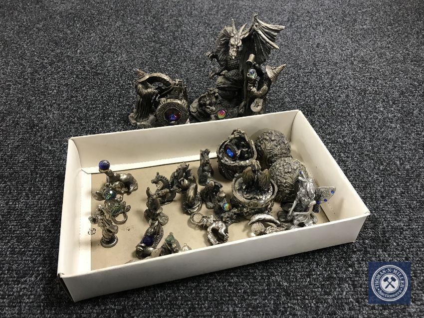A small quantity of metal figures including Myth & Magic dragon figures, Tudor Mint figures etc