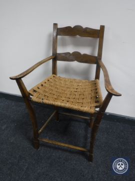 A rush seated kitchen armchair