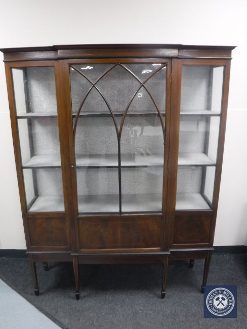 An Edwardian inlaid mahogany break-front display cabinet