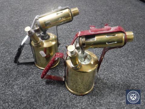 Two vintage brass blow lamps (2)