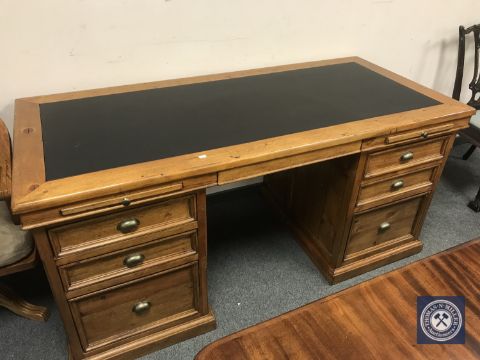A good quality pine pedestal desk, width 175 cm