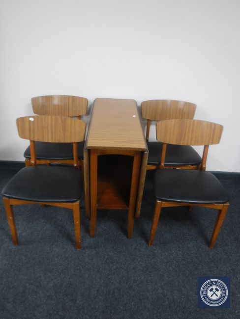 A melamine drop leaf kitchen table and four dining chairs