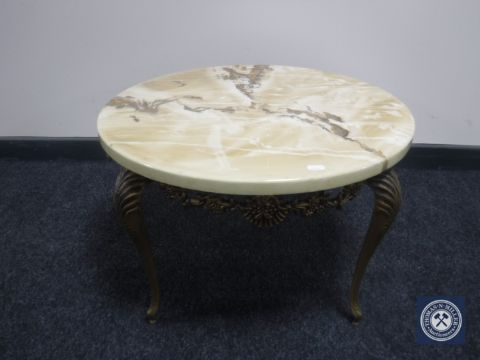A marble effect circular coffee table on metal legs