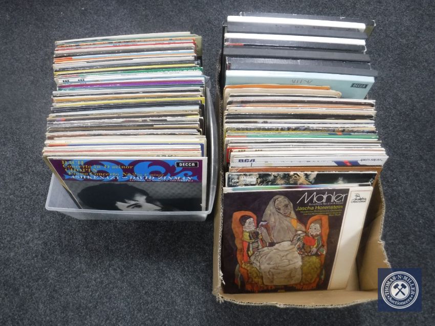 Two boxes of Classical LP's, Decca HMV labels, quantity of sheet music