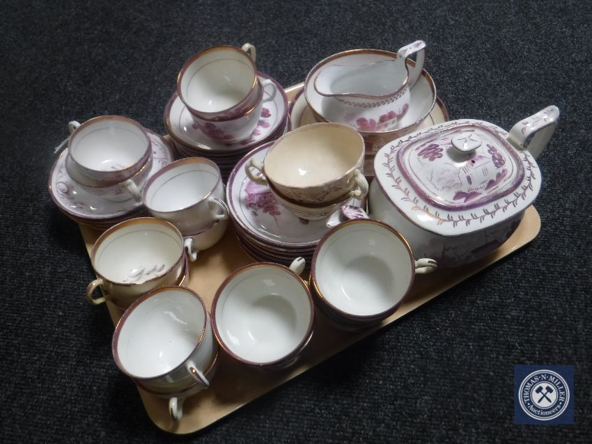 Fifty-four pieces of antique lustre tea china