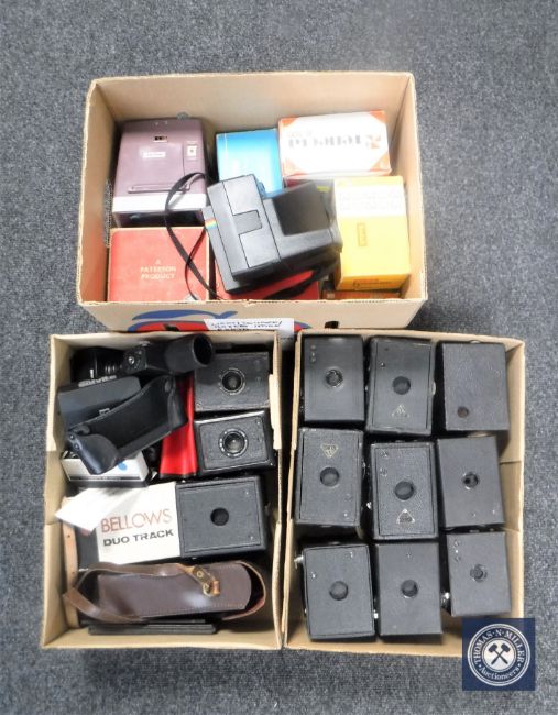 Three boxes of cameras and accessories - Polaroid, boxed Brownie etc