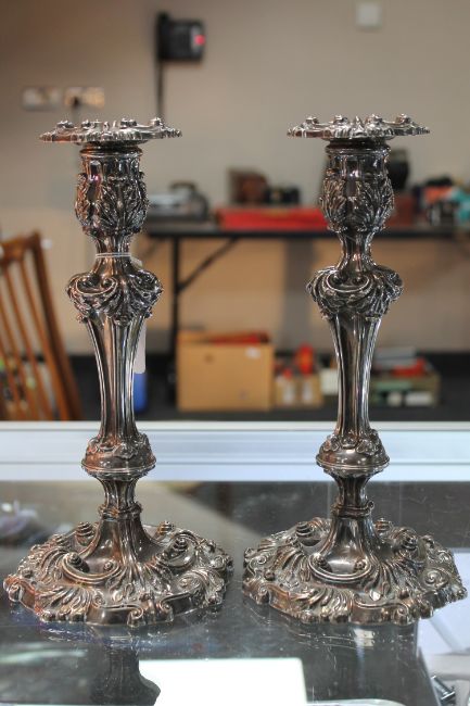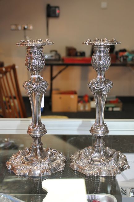 The hallmarks match throughout. The candlesticks are level. They generally appear to be in excellent order with no faults or damages.