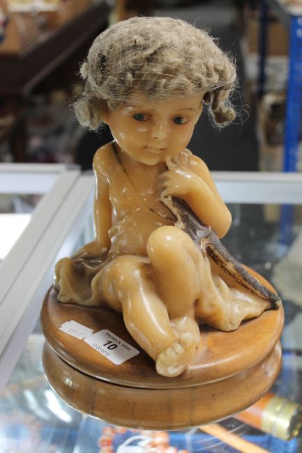 Appears to be in good condition. We have discovered that this was originally from an opticians window, and the doll's miniature spectacles have been found. See images.