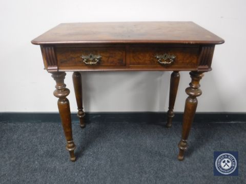 A Victorian walnut writing table fitted two drawers