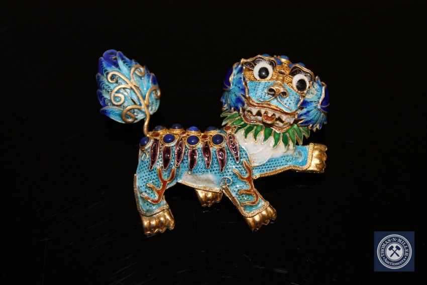 A silver gilt Chinese foo dog brooch
