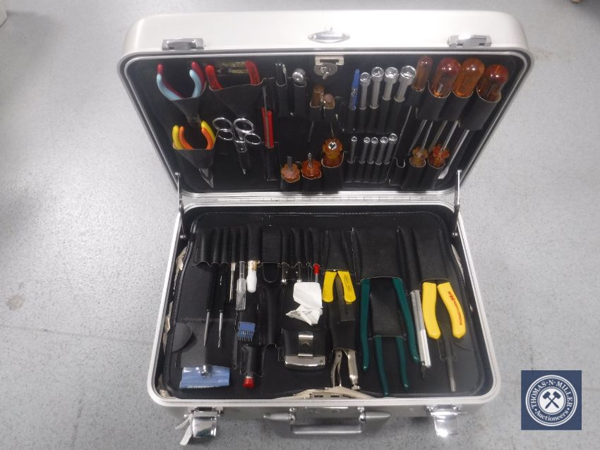 A professional Jensen Tools aluminium tool case with security lock, containing fully stocked pallets of tools in un-used condition.