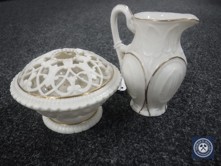 A Royal Worcester cream and gilt potpourri bowl together with a similar jug